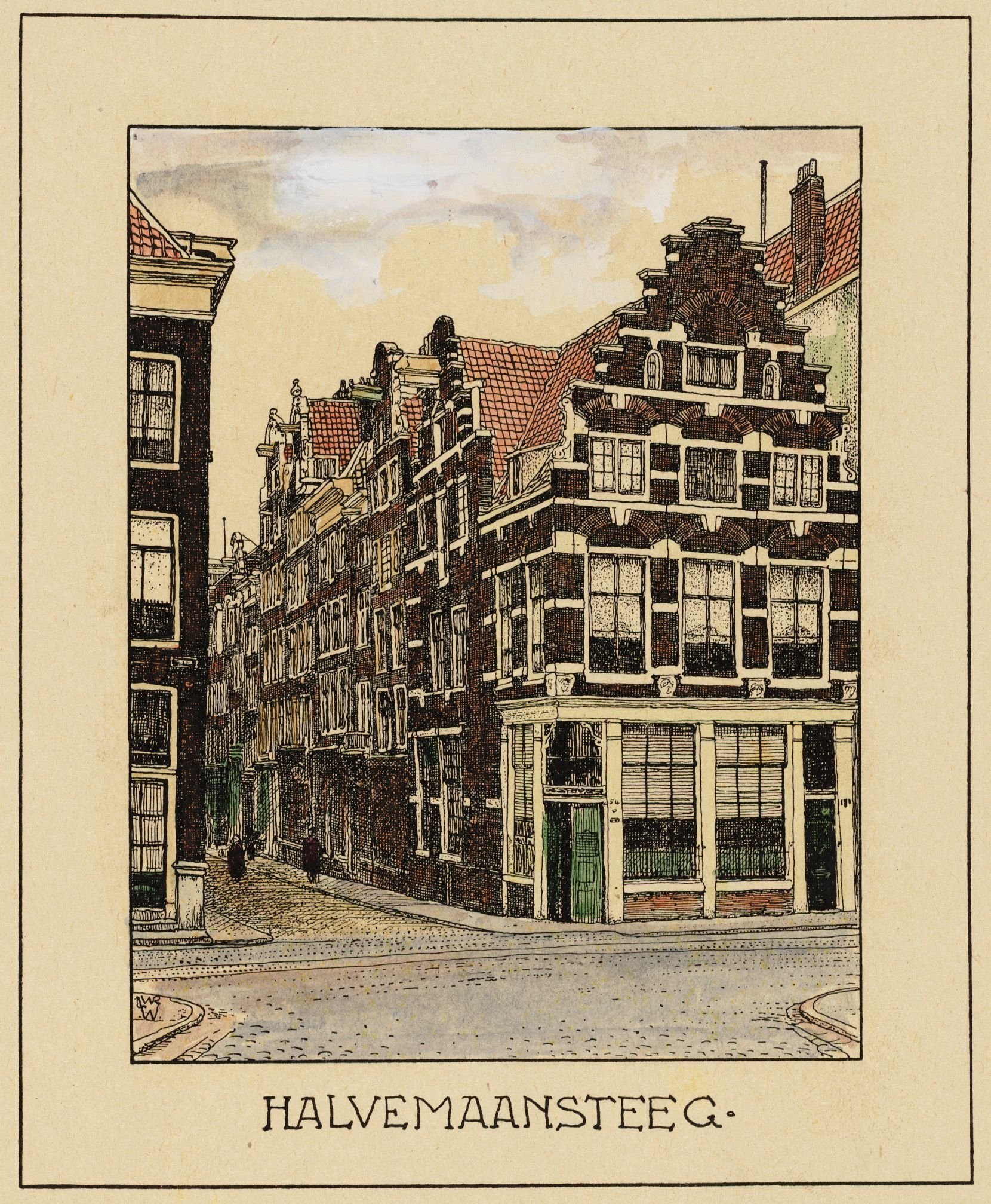 Beschrijving: Reproductie naar tekening van L.W.R. Wenckebach, door de kunstenaar zelf met de hand ingekleurd.